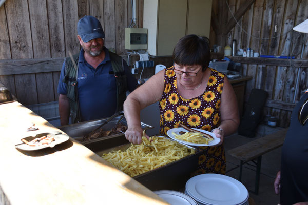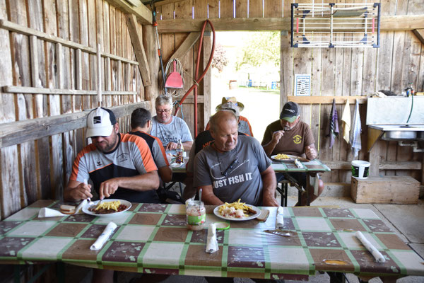 Zur Mittagspause gab es Grillgut mit Pommes.